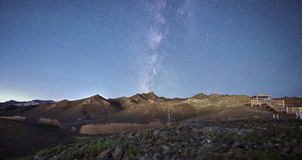星空下的赤木口長(zhǎng)城(2023年8月21日長(zhǎng)時(shí)間曝光拍攝)。
