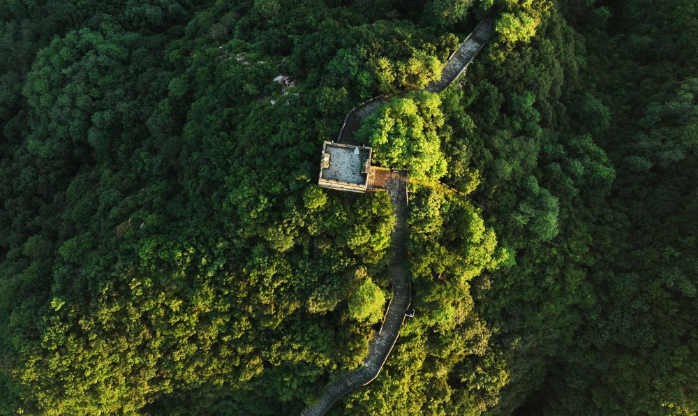 河北省遷西縣榆木嶺長(zhǎng)城景色(無(wú)人機(jī)照片,2023年7月9日攝)。