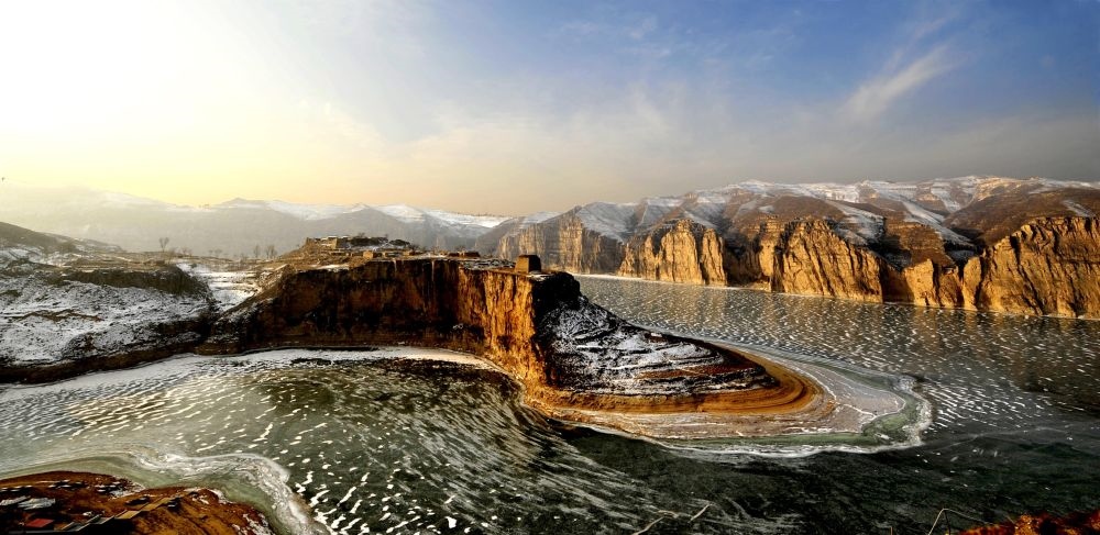 這是位于山西和內(nèi)蒙古交界處的黃河老牛灣冬日景色(2009年12月11日攝)。