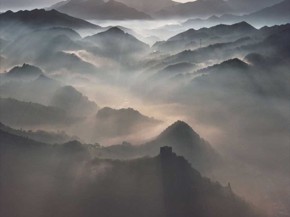 晨曦中的古北口長(zhǎng)城(2023年9月28日攝)。