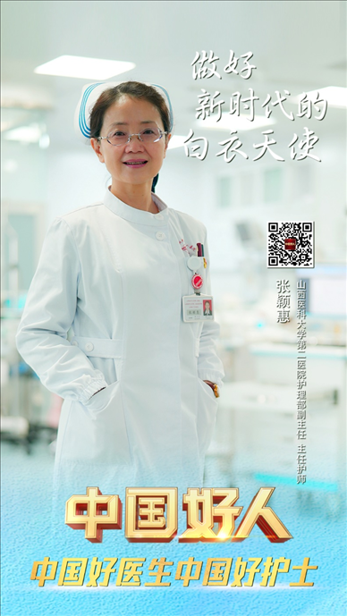 張穎惠,女,1971年12月生,中共黨員,山西醫(yī)科大學(xué)第二醫(yī)院護(hù)理部副主任、主任護(hù)師,第49屆南丁格爾獎(jiǎng)?wù)芦@得者。從事護(hù)理工作30多年,她始終撲在一線,面對(duì)重大突發(fā)事件第一時(shí)間挺身而出;她帶領(lǐng)同事們不斷創(chuàng)新護(hù)理技術(shù),探索危重患者查房模式,構(gòu)建護(hù)理質(zhì)控體系;她積極為貧困地區(qū)、基層醫(yī)療機(jī)構(gòu)送知識(shí)、送技術(shù)、送教育、送專業(yè),用實(shí)際行動(dòng)詮釋了新時(shí)代白衣天使的使命與擔(dān)當(dāng)。