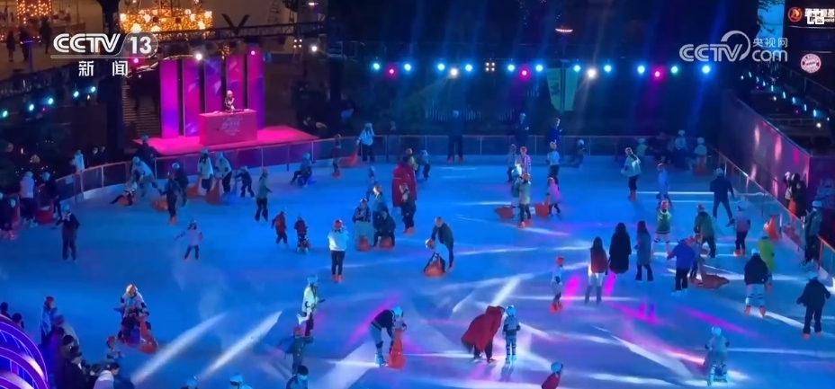 在北外灘商圈,這片占地1200平方米的露天冰場(chǎng)吸引了不少市民游客。人們滑冰、逛街、吃飯,還能觀看白玉蘭國(guó)際冰雪節(jié)的主題活動(dòng)和演出。