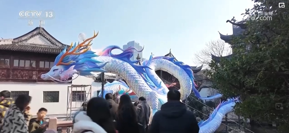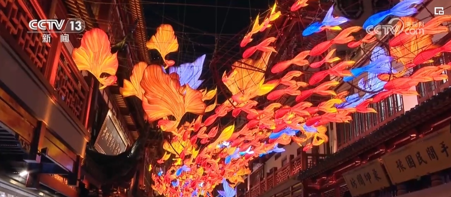在上海,迎新春的傳統(tǒng)活動(dòng)豫園燈會(huì)正在緊鑼密鼓籌備中。在豫園商城的凝暉路上,名為“一夜魚龍舞”的主題燈組已經(jīng)亮燈。抬眼望去,多彩的魚群匯成游龍回旋的姿態(tài),游走在飛檐斗拱之間,呈現(xiàn)出一片繁華景象。