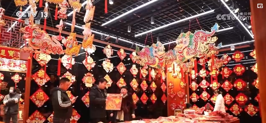 在浙江義烏國(guó)際商貿(mào)城,來自全國(guó)各地的采購(gòu)商們抓緊選購(gòu)著年貨。市場(chǎng)里的龍?jiān)禺a(chǎn)品頗受客商們歡迎,對(duì)聯(lián)、年畫、福字、紅包等產(chǎn)品,將從浙江義烏發(fā)往全球各地。