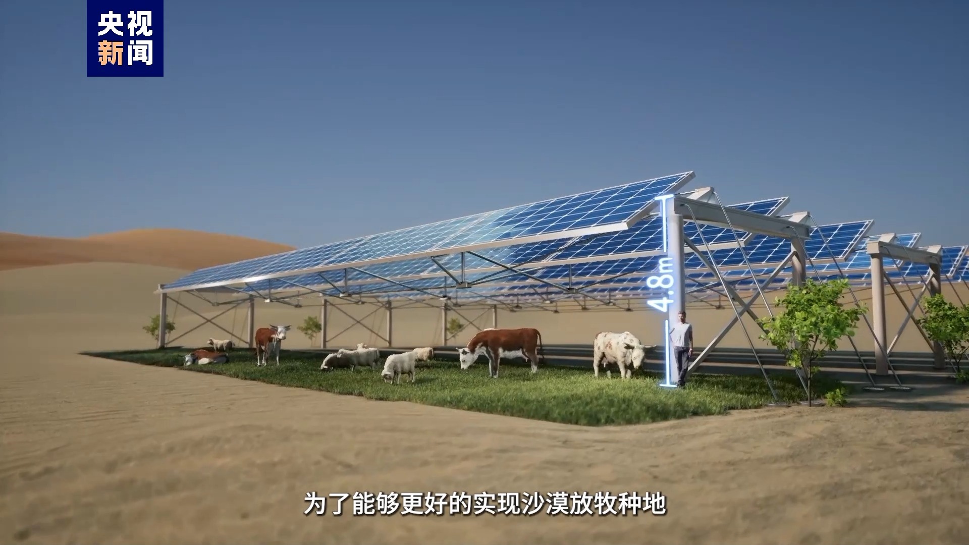 在昨天(29日)實(shí)現(xiàn)并網(wǎng)發(fā)電的我國首個(gè)千萬千瓦級(jí)大型風(fēng)光基地項(xiàng)目不遠(yuǎn)處,三峽集團(tuán)投資建設(shè)了蒙西基地庫布其200萬千瓦光伏治沙項(xiàng)目,這里牛羊成群、蔬果成片,帶上孜然辣椒面,咱們就能去庫布其燒烤攤擼串了!所以,到底是如何做到在沙漠放牧種地的呢?