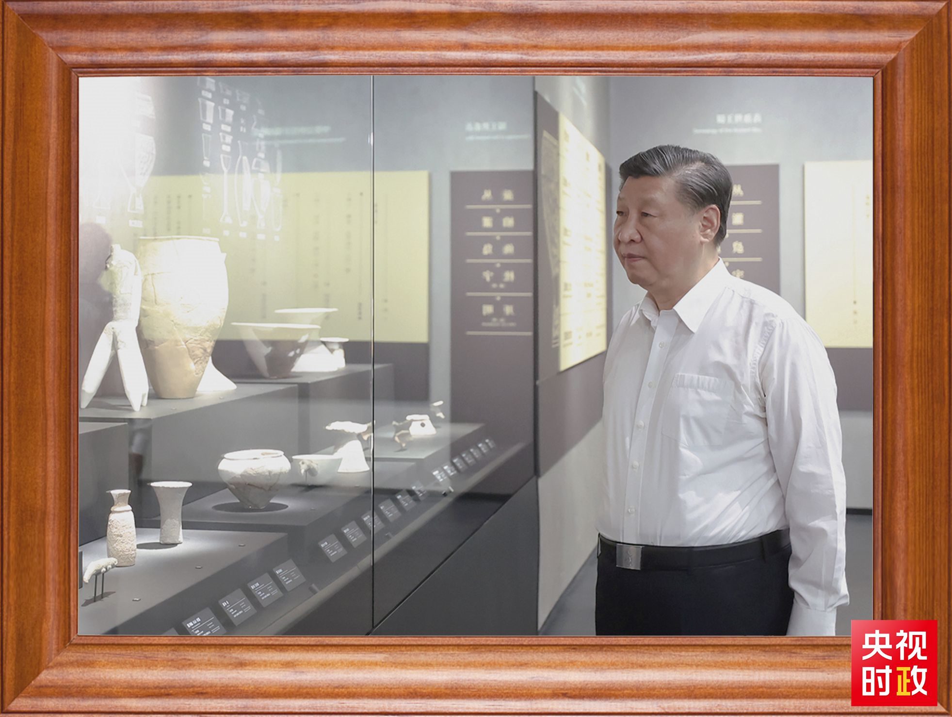 在習(xí)近平總書記的書架上,有這么一張照片,記錄著他的文化足跡——2023年7月26日,總書記來到位于四川省德陽(yáng)市廣漢市的三星堆博物館新館,了解三星堆遺址發(fā)掘歷程和古蜀文明成果。