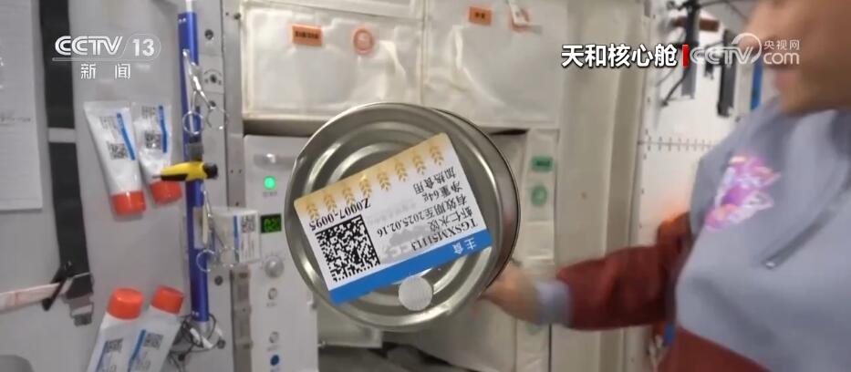 航天員 江新林:我是今天的太空美食家,讓我?guī)ьI(lǐng)大家一起來探索發(fā)現(xiàn)今天的太空美食。我們先看一下主食,熱乎乎的,看看里面都有什么吧,有01最愛吃的白米飯,小心燙哦,02愛吃的面條,我的炒飯。好了,把它粘在餐桌上。然后再讓我們看看我為他們準(zhǔn)備的驚喜??纯催@是什么?這是我們冬至特意結(jié)余的餃子,還有蔬菜副食。地面上的工作人員考慮得特別周到,按照個(gè)人的口味為我們準(zhǔn)備了美味的食品,而且將它們塑封包裝,給我們節(jié)余時(shí)間的時(shí)候又保證它的口味。這是網(wǎng)紅太空香粽,大家印象比較深刻吧,還有這個(gè)年糕也是特別好吃、特別美味,還有紅燴豬排,保證有足夠的蛋白質(zhì)攝入量。很豐盛。請看這里,我們特意留了一些新鮮的水果,看看都有什么吧,有美味的蘋果,還有葡萄,大家這個(gè)都特別愛吃,我們?nèi)齻€(gè)在一起分享一下。