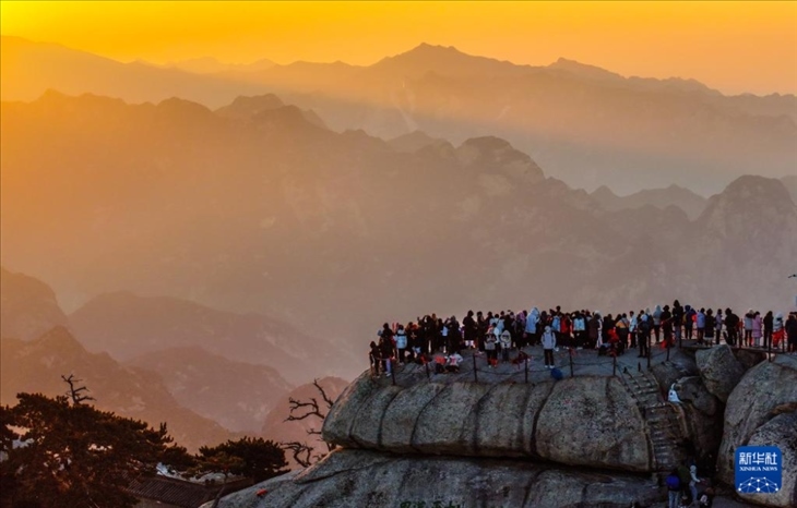 2023年12月31日,游客在位于陜西省渭南市的華山西峰賞景(無(wú)人機(jī)照片)。元旦假期期間,人們用各種方式樂享時(shí)光,迎接新年,歡度假期。新華社發(fā)(汪艷 攝)