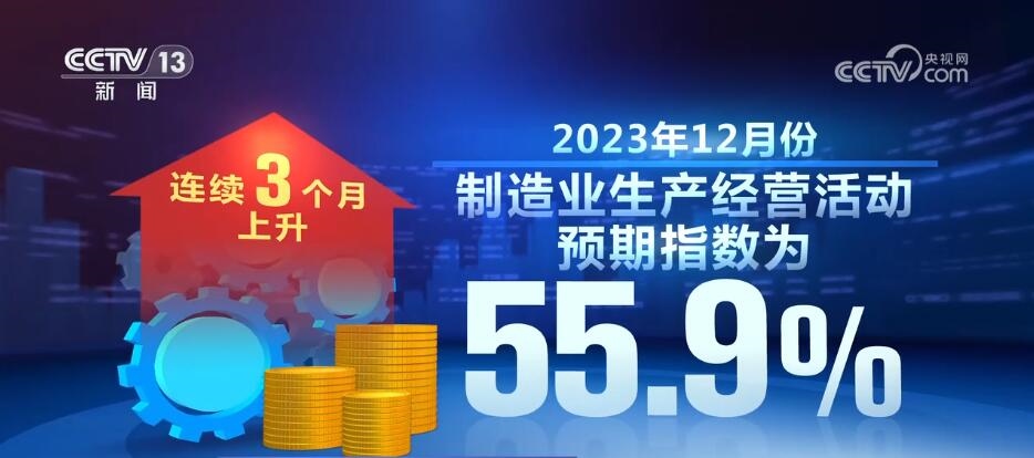 數(shù)據(jù)顯示,2023年12月份,制造業(yè)生產(chǎn)經(jīng)營活動預(yù)期指數(shù)為55.9%,連續(xù)3個月上升,表明制造業(yè)企業(yè)對市場發(fā)展信心不斷增強(qiáng)。2023年12月份,高技術(shù)制造業(yè)和裝備制造業(yè)采購經(jīng)理指數(shù)分別為50.3%和50.2%,繼續(xù)保持?jǐn)U張。