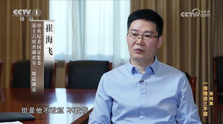 崔海飛(中央紀委國家監(jiān)委第十六審查調(diào)查室二級巡視員):把調(diào)查改成研究,沒有查出任何問題,也沒有處理任何人,只是作了一個調(diào)研報告。他本應(yīng)帶領(lǐng)中國足協(xié)黨委擔負起中國足球全面從嚴治黨的主體責任,但是他不敢抓、不敢管,也在一定程度上導致中國足球領(lǐng)域腐敗問題嚴重,行業(yè)生態(tài)惡化。