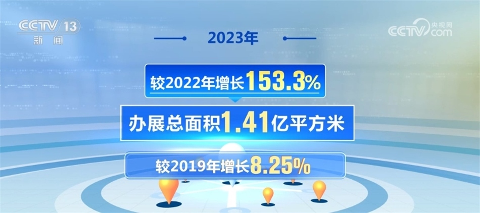 《中國展覽經(jīng)濟(jì)發(fā)展報告2023》統(tǒng)計數(shù)據(jù)顯示,2023年中國共舉辦經(jīng)貿(mào)類展會3923場,較2022年增長117.1%,較2019年增長10.6%;辦展總面積1.41億平方米,較2022年增長153.3%,較2019年增長8.25%。經(jīng)貿(mào)類展會數(shù)量和展出面積超越疫情前水平,展覽業(yè)呈現(xiàn)全面恢復(fù)態(tài)勢。