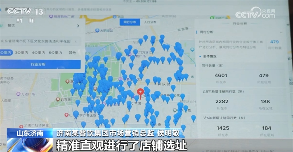 濟南某餐飲集團市場營銷總監(jiān) 侯明敬:我們通過“濟南公共數(shù)據(jù)開放網(wǎng)”上的“泉城商業(yè)選址”應(yīng)用,精準直觀進行了店鋪選址。比如說兩公里內(nèi)餐飲同行有479家,人口總量超過了24萬人,其中31—50歲的比例最大,占到了29.9%,這和我們這家餐廳比較適合商務(wù)聚會、家庭聚會的市場定位非常吻合。