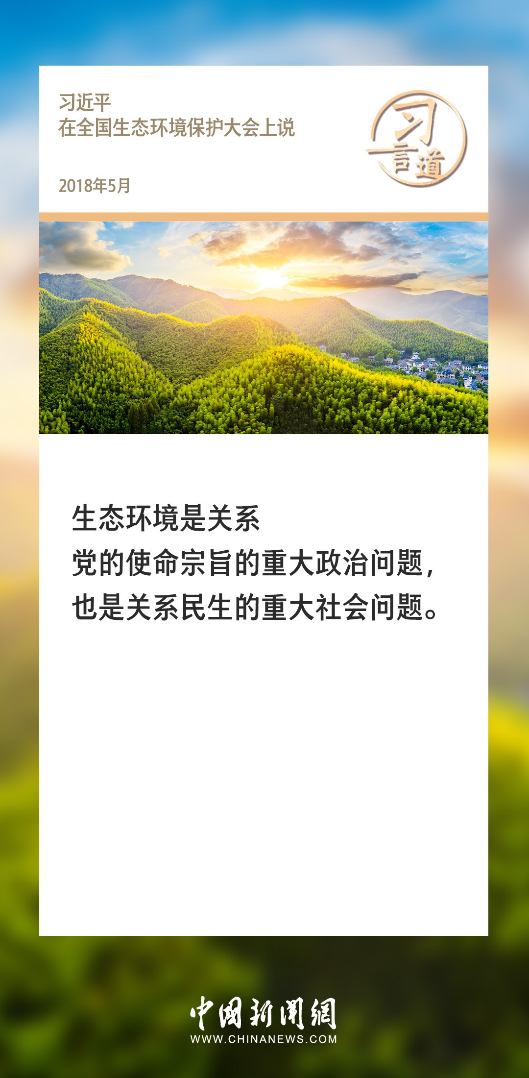 生態(tài)文明建設(shè)是關(guān)系中華民族永續(xù)發(fā)展的根本大計。黨的十八大以來,習(xí)近平總書記就生態(tài)文明建設(shè)發(fā)表過一系列重要論述,諸多“金句”深入人心。