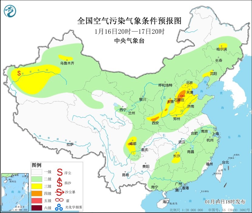 15日,受降水影響,區(qū)域大部大氣擴散條件較好。16日至20日,區(qū)域大氣擴散條件一般,山西南部、陜西關(guān)中等地的部分地區(qū)有輕至中度霾。