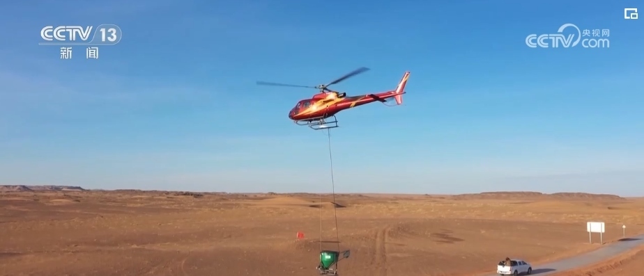 在內(nèi)蒙古烏拉特后旗瑪瑙湖的上空,每天都有兩架直升機輪番作業(yè),每天大概飛播20多噸種子。陰山北麓烏拉特后旗2023年度生態(tài)綜合治理項目是三北工程的一部分,在2023年7月開始施工,計劃在2024年2月底完成生態(tài)修復(fù)治理面積約為77.44萬畝。