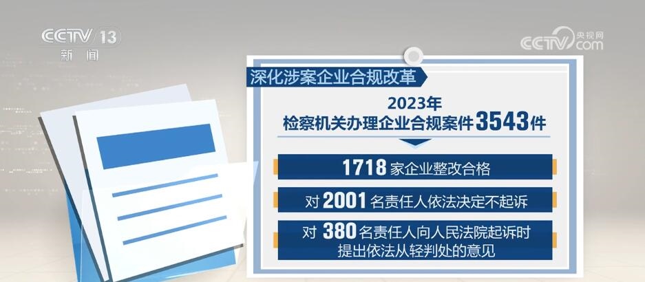 深化涉案企業(yè)合規(guī)改革。2023年檢察機(jī)關(guān)辦理企業(yè)合規(guī)案件3543件,其中1718家企業(yè)整改合格,對2001名責(zé)任人依法決定不起訴,對380名責(zé)任人向人民法院起訴時提出依法從輕判處的意見。加強(qiáng)知識產(chǎn)權(quán)綜合司法保護(hù)。審查起訴侵犯知識產(chǎn)權(quán)犯罪案件2.8萬人,同比上升53.3%;受理知識產(chǎn)權(quán)民事行政訴訟監(jiān)督案件2240件,同比增長1.7倍。持續(xù)加大對信息技術(shù)、生物醫(yī)藥、新能源等高科技領(lǐng)域知識產(chǎn)權(quán)保護(hù)力度。針對涉知識產(chǎn)權(quán)惡意訴訟、惡意侵權(quán)多發(fā)問題,持續(xù)組織開展專項監(jiān)督,促進(jìn)營造良好創(chuàng)新生態(tài)。