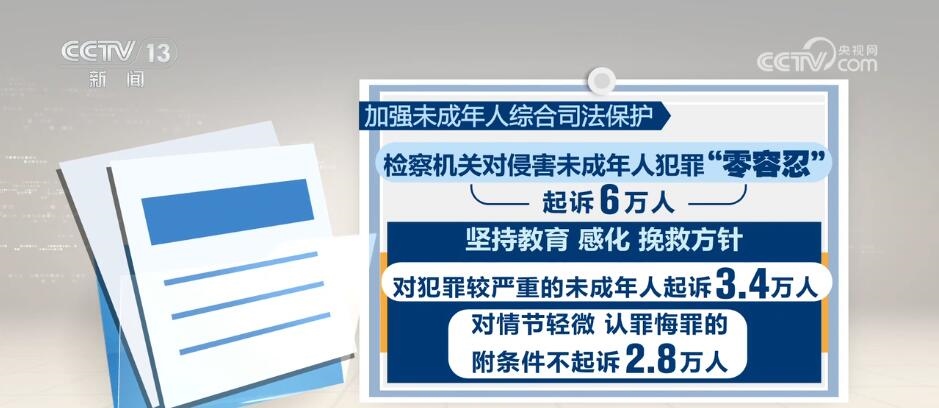 加強(qiáng)未成年人綜合司法保護(hù)。檢察機(jī)關(guān)對侵害未成年人犯罪“零容忍”,起訴6萬人。堅持教育、感化、挽救方針,對犯罪較嚴(yán)重的未成年人起訴3.4萬人;對情節(jié)輕微、認(rèn)罪悔罪的,附條件不起訴2.8萬人。部署加強(qiáng)犯罪預(yù)防工作,推動罪錯未成年人分級干預(yù),協(xié)調(diào)推動專門學(xué)校建設(shè),依法矯治有嚴(yán)重不良行為的未成年人。
