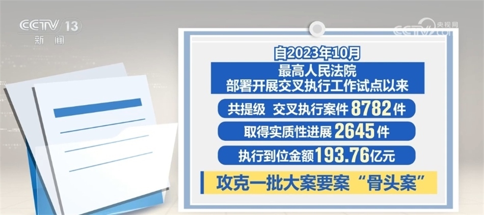 最高人民法院介紹,執(zhí)行難中常見(jiàn)被執(zhí)行人是當(dāng)?shù)刂匾髽I(yè)、納稅大戶,甚至是重點(diǎn)國(guó)企或行政部門等情況。交叉執(zhí)行就是要讓接受指定的法院在不受牽絆、沒(méi)有包袱、完全依法自主的條件下力推案件執(zhí)行。據(jù)統(tǒng)計(jì),開(kāi)展交叉執(zhí)行工作試點(diǎn)以來(lái),共提級(jí)、交叉執(zhí)行案件8782件,取得實(shí)質(zhì)性進(jìn)展2645件,執(zhí)行到位金額193.76億元,攻克了一批大案要案“骨頭案”。最高人民法院要求,上級(jí)法院發(fā)現(xiàn)原執(zhí)行法院存在消極執(zhí)行、拖延執(zhí)行等執(zhí)行不力情形,發(fā)現(xiàn)違紀(jì)違法問(wèn)題線索的,應(yīng)當(dāng)嚴(yán)肅依紀(jì)依法查處、追究責(zé)任。
