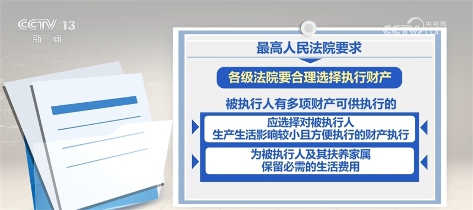 最高人民法院要求,各級(jí)法院要合理選擇執(zhí)行財(cái)產(chǎn),被執(zhí)行人有多項(xiàng)財(cái)產(chǎn)可供執(zhí)行的,應(yīng)選擇對(duì)被執(zhí)行人生產(chǎn)生活影響較小且方便執(zhí)行的財(cái)產(chǎn)執(zhí)行,同時(shí),為被執(zhí)行人及其扶養(yǎng)家屬保留必需的生活費(fèi)用。對(duì)涉及企業(yè)尤其是民營(yíng)企業(yè)的,要嚴(yán)格區(qū)分企業(yè)法人財(cái)產(chǎn)與股東個(gè)人財(cái)產(chǎn),嚴(yán)禁違法查封案外人財(cái)產(chǎn),嚴(yán)禁對(duì)不得查封的財(cái)產(chǎn)采取執(zhí)行措施,堅(jiān)決杜絕超標(biāo)的查封,切實(shí)保護(hù)民營(yíng)企業(yè)等企業(yè)法人、企業(yè)家和各類市場(chǎng)主體合法權(quán)益。