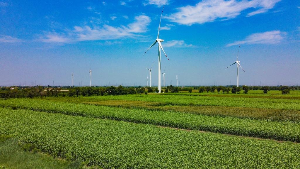 走進(jìn)小王莊鎮(zhèn)李官莊村,連片的農(nóng)田之間,最顯眼的是一臺(tái)臺(tái)高聳入云的風(fēng)力發(fā)電機(jī),如同一只只白鳥展開巨大的翅膀,葉片隨風(fēng)緩緩轉(zhuǎn)動(dòng)。