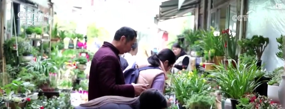 在江西南昌的大型花卉市場,各色鮮花、盆景被店家擺放在顯眼的位置,吸引了許多消費(fèi)者前來選購。