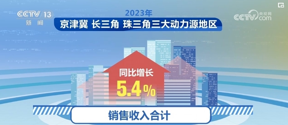 2023年,京津冀、長三角、珠三角三大動力源地區(qū)經(jīng)濟(jì)總體呈現(xiàn)較快發(fā)展態(tài)勢,銷售收入合計(jì)同比增長5.4%,占全國比重提高至54.1%,較2022年提高0.3個百分點(diǎn),帶動作用持續(xù)增強(qiáng)。