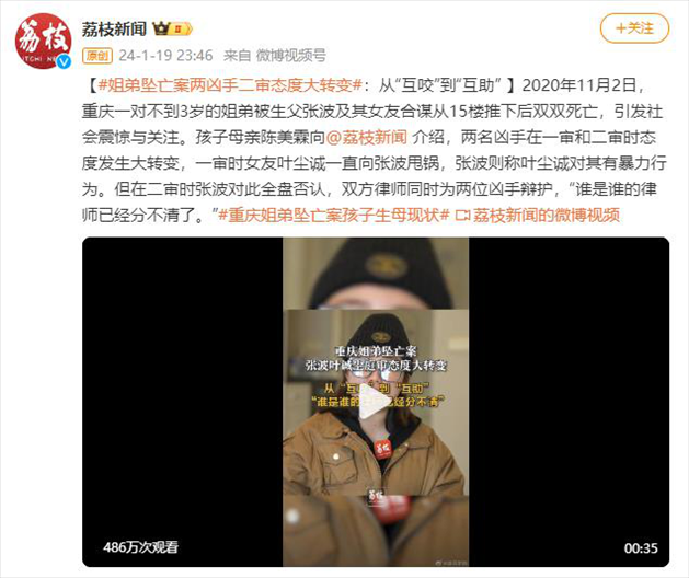 ·重慶姐弟墜亡案孩子母親陳美霖近日向媒體介紹,兩名兇手在一審和二審時(shí)態(tài)度發(fā)生大轉(zhuǎn)變,一審時(shí)女友葉塵誠一直向張波甩鍋,張波則稱葉塵誠對其有暴力行為。但在二審時(shí)張波對此全盤否認(rèn),雙方律師同時(shí)為兩位兇手辯護(hù),“誰是誰的律師已經(jīng)分不清了?!?/p>
