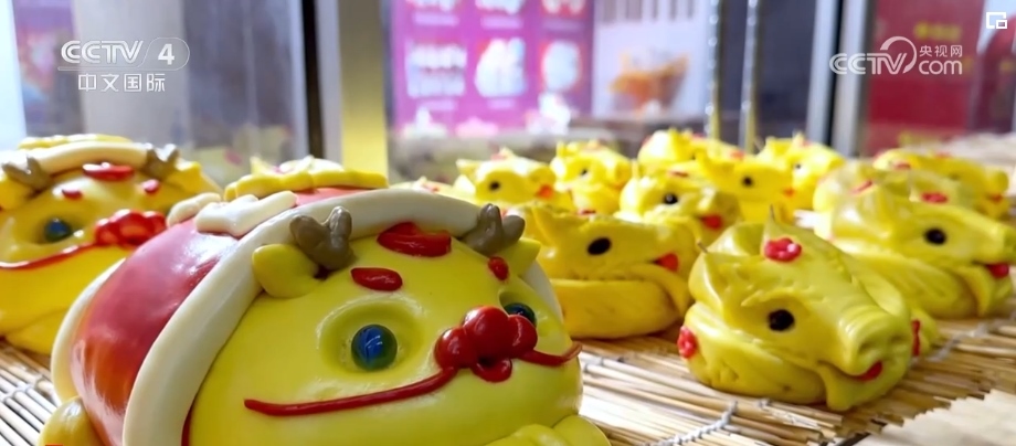 在山東,逢年過節(jié)人們也有做花餑餑、吃花餑餑的民俗。為迎合春節(jié)市場,不少加工廠已經在趕制帶有龍年元素的花餑餑。面點師們先將面團搓長,再用果蔬汁調制,最后再揉捏造型?;G餑披上“紅衣”,一只可愛的“醒獅龍”就活靈活現(xiàn)地出現(xiàn)在眼前。