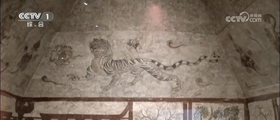 太原市文物考古研究院文物考古研究所副所長 劉?。?/strong>墓室四壁畫的是樹下老人圖,還有一個(gè)比手勢,就和咱們今天的“耶”(很像)。
