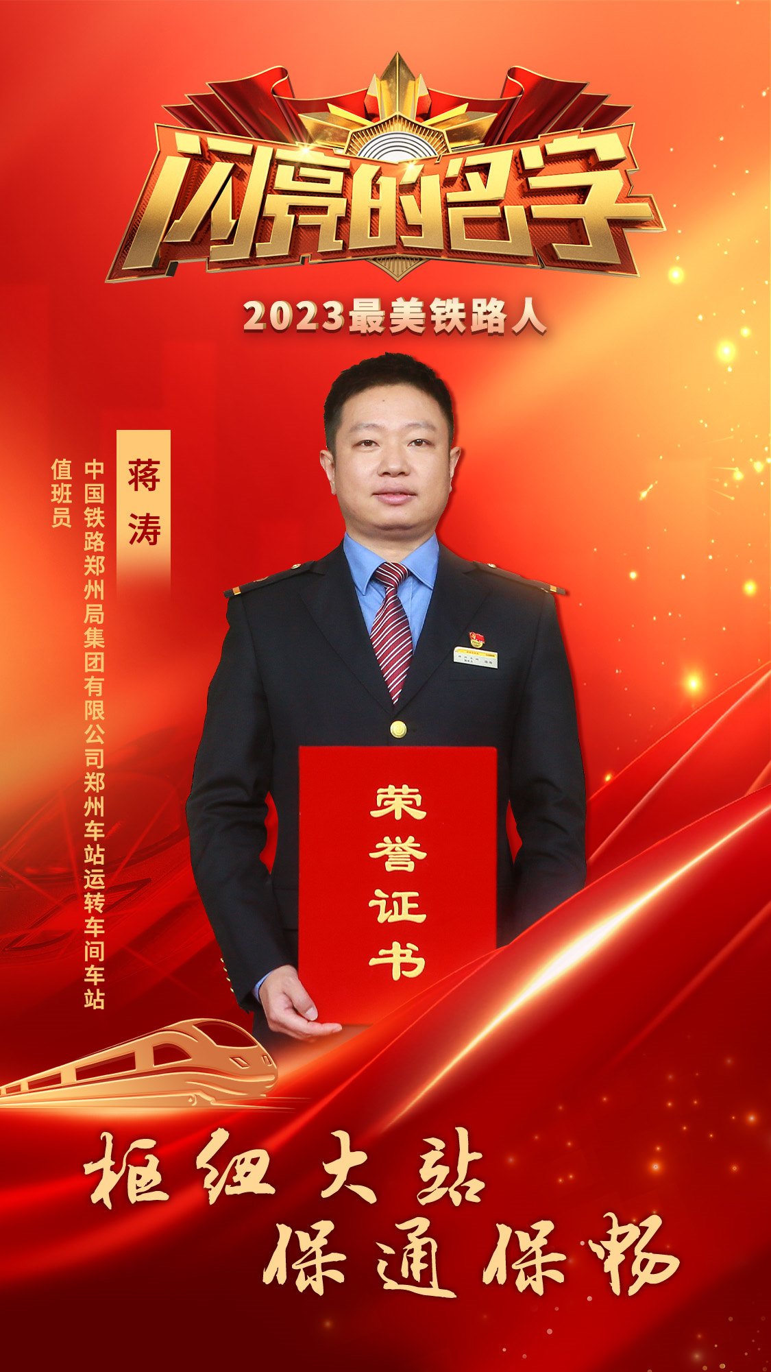 獲得2023年“最美鐵路人”稱號的10名個(gè)人和1個(gè)集體分別是蔣濤、王庭虎、張華、李軍、王笑冰、米爾班?艾依提、斯朗旺扎、馬小利、陳燕平、朱少銘,以及通化橋隧第一維修小組。