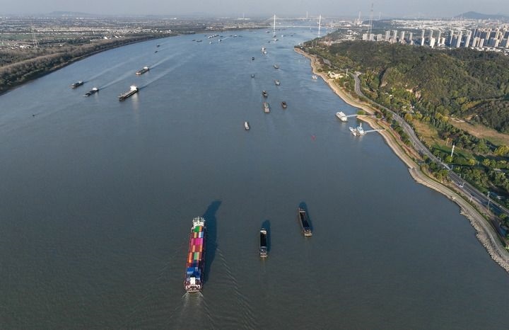 冬季枯水期,長江江蘇段依舊浩浩蕩蕩,萬噸巨輪往來如梭。這里是長江黃金水道“鉆石航段”,承載全線七成貨運量、全國一成半水上貨運量,助力江蘇建設(shè)具有世界聚合力的雙向開放樞紐。