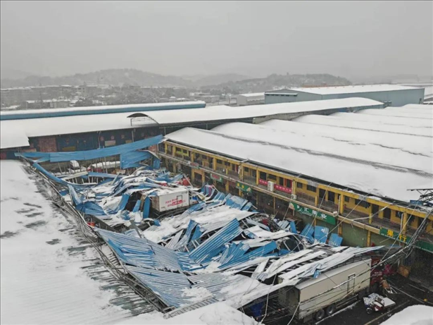 ·湖南郴州一水果大市場(chǎng)頂棚積雪垮塌前預(yù)警及時(shí),百余人成功避險(xiǎn)。