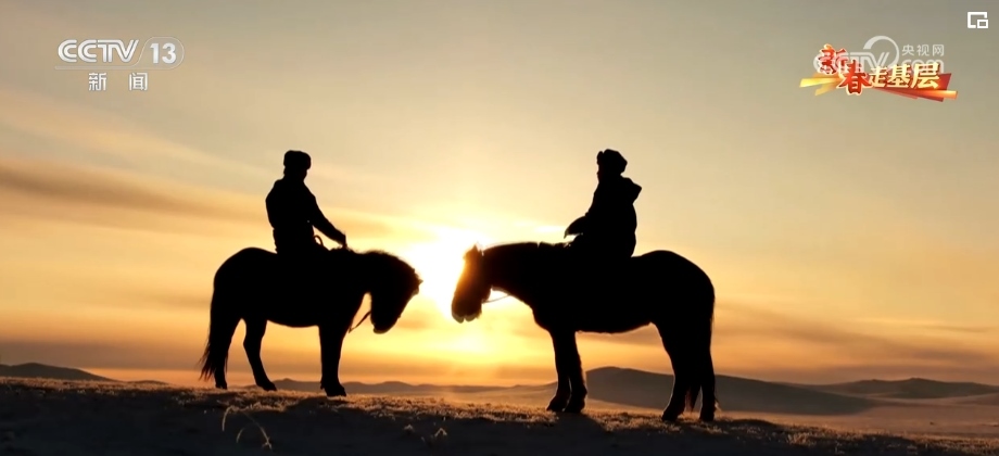 每一次巡邊,路程有80公里,最少走兩天。一路上,阿其圖和戰(zhàn)友們騎馬行走在被白雪覆蓋的草原上,踏查、走訪牧戶、聯(lián)絡(luò)護邊員。