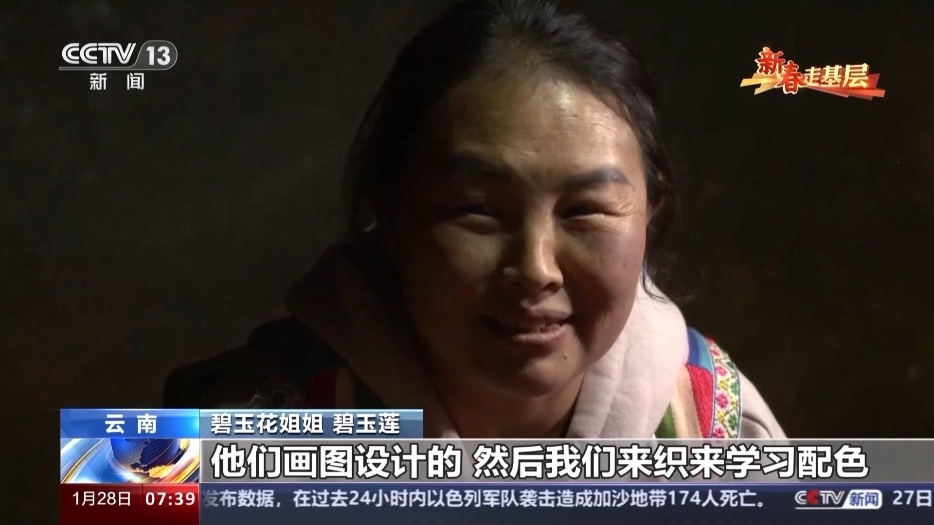 在獨(dú)龍江鄉(xiāng),記者見到了34歲的獨(dú)龍族婦女碧玉花,她和姐妹們春節(jié)前,要為客戶趕制一批獨(dú)龍?zhí)?。紗線剛剛運(yùn)來,她們就迫不及待地趕往河對岸的工作室。