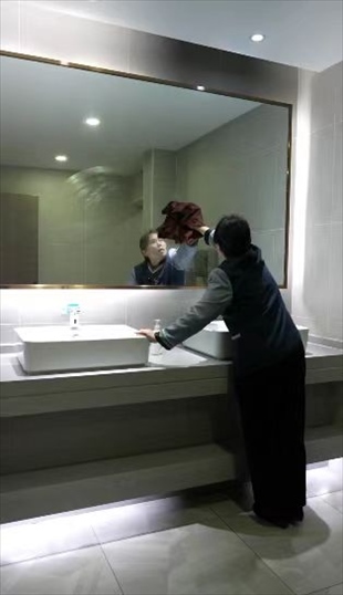 王柳云的保潔面積很大,整個(gè)寫(xiě)字樓的十五層和十七層,地板、桌椅、窗戶、衛(wèi)生間,都是她的職責(zé)范圍。“很多人一開(kāi)完會(huì),杯子、椅子、桌子要清理,還有窗子全部要擦干凈”,她形容自己的工作量“三四個(gè)人都干不完”,但她看中了這份工作留給她的一隅,隨便找個(gè)角落就可以寫(xiě)字畫(huà)畫(huà)。