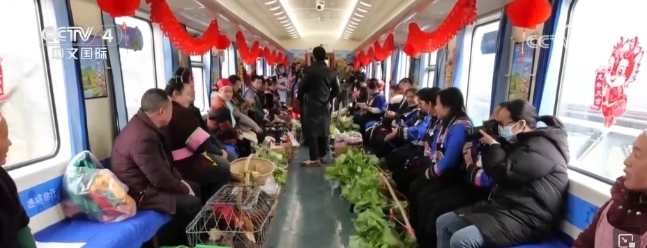 在貴州,有一趟往返于貴陽(yáng)與玉屏之間的“慢火車(chē)”5640次列車(chē),里面專設(shè)了一個(gè)農(nóng)特產(chǎn)品車(chē)廂。新春臨近,村民們將自家養(yǎng)殖的土雞、雞蛋,熏制的香腸、臘肉,以及水果、蔬菜帶上列車(chē),向旅客現(xiàn)場(chǎng)售賣(mài)。
