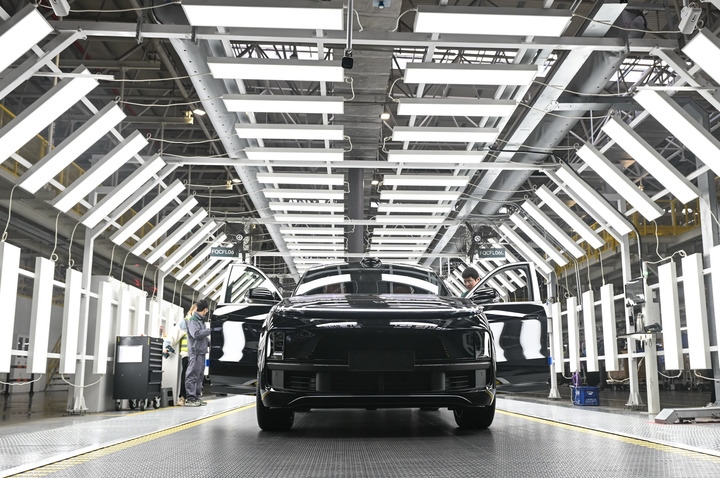 在理想汽車江蘇常州基地,成品汽車準(zhǔn)備下線。新華社記者季春鵬 攝