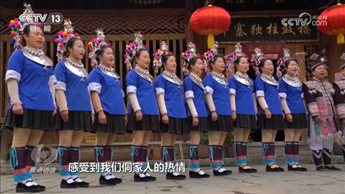 石妮妮:“今年,‘村晚’的主題是‘侗族百家宴、歡樂中國年’,打造了沉浸式、行走式的體驗。希望游客還有嘉賓們,能夠通過沉浸式體驗更加深厚地了解侗族文化,感受到侗家人的熱情?!?br>