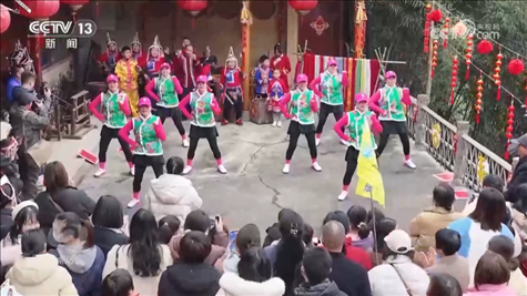 崗石村2019年被列入第五批中國傳統(tǒng)村落名錄,也是遠近聞名的旅游村。1月27日下午2點,崗石村“村晚”在文化禮堂、涼亭、農(nóng)家院子等六個點位進行了表演。這場“行走的村晚”不僅創(chuàng)新了節(jié)目形式,而且也創(chuàng)造了更多與游客互動的空間,吸引了各地游客的同時,也讓游客有了更好的旅游體驗。
