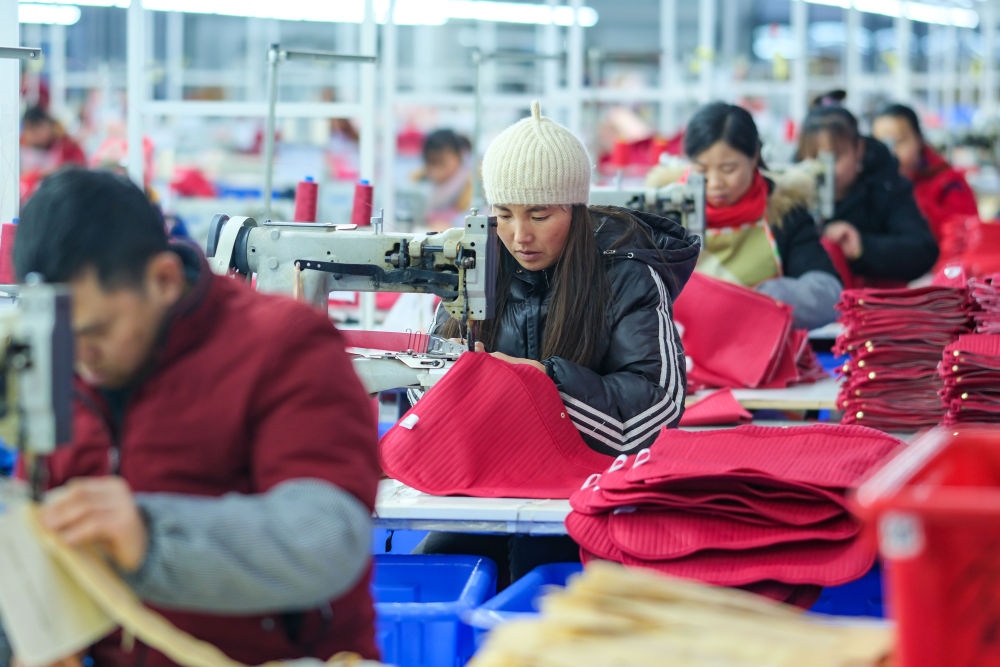 2024年1月18日,社區(qū)居民在湖南省湘西土家族苗族自治州鳳凰縣禾庫(kù)鎮(zhèn)紅安社區(qū)的鄉(xiāng)村振興就業(yè)車間工作。紅安社區(qū)是由易地搬遷安置區(qū)單獨(dú)成立的新社區(qū),也是湖南省最大的少數(shù)民族聚居安置區(qū)。新華社記者 張鋮 攝