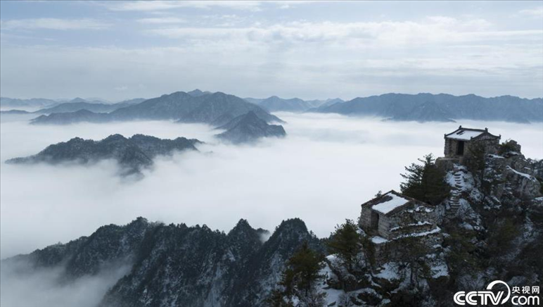 2月5日,西安,長(zhǎng)安區(qū)楊莊街道庫(kù)峪太興山雪后云海翻涌。