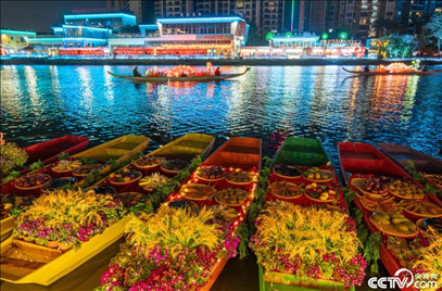 2月5日,廣東佛山,春節(jié)臨近,佛山最大的水上花市在里水鎮(zhèn)開幕。其中水上渡船、水上燈會(huì)等項(xiàng)目融入了非遺元素,展示嶺南水鄉(xiāng)風(fēng)情,營(yíng)造濃濃的年味。