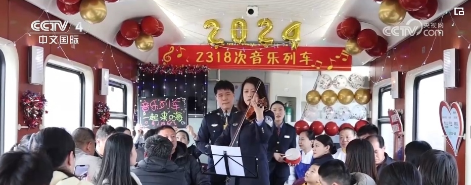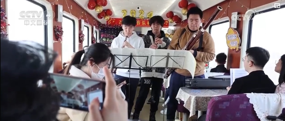 隨著春節(jié)臨近,在外務(wù)工的游子們紛紛踏上了回家的旅途。在青島北開往成都西Z318次列車上,悅耳歡快旋律響起,列車工作人員邀請3位學(xué)生旅客,為大家演奏了悠揚歡快的樂曲。