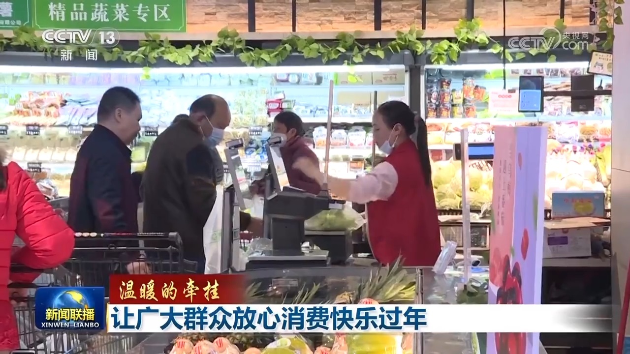 央視網(wǎng)消息(新聞聯(lián)播):春節(jié)是中國最重要的傳統(tǒng)節(jié)日。習(xí)近平總書記在天津考察時(shí)強(qiáng)調(diào),各級黨委和政府要加強(qiáng)節(jié)日期間民生商品的產(chǎn)銷保供,確保數(shù)量充足、品類豐富、質(zhì)量可靠,讓廣大群眾放心消費(fèi)、快樂過年。春節(jié)前夕,從中央到地方,多措并舉,保障春節(jié)期間市場供應(yīng),穩(wěn)定消費(fèi)市場價(jià)格,節(jié)日市場貨品豐富,供應(yīng)充足。