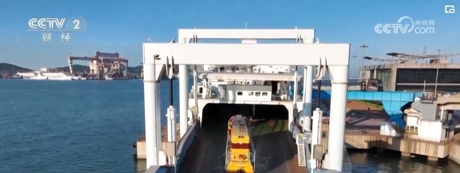 中鐵渤海3號(hào)渡船全長(zhǎng)182.6米、寬24.8米,滿載排水量可達(dá)16229噸,單航次可載運(yùn)一列50節(jié)貨物列車和50輛載重汽車、25輛小汽車以及716名旅客。