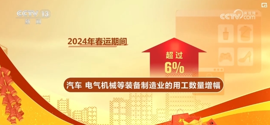 與前兩年的數(shù)據(jù)相比,也有不少人選擇春節(jié)不回家,堅(jiān)守崗位投入到工作當(dāng)中。北京大學(xué)與中國(guó)聯(lián)通智慧足跡的聯(lián)合團(tuán)隊(duì)在對(duì)近幾年春節(jié)前后的手機(jī)信令數(shù)據(jù)進(jìn)行建模分析后,發(fā)現(xiàn)2024年春運(yùn)期間,全國(guó)2000多個(gè)重點(diǎn)產(chǎn)業(yè)園區(qū)的用工數(shù)量將比2023年同期增長(zhǎng)5.8%。
