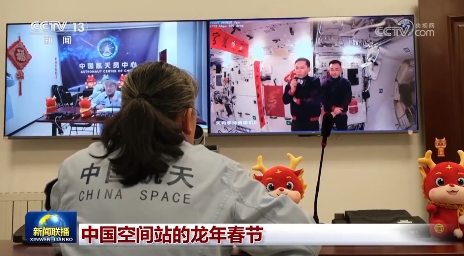 除夕當(dāng)天,航天員湯洪波、唐勝杰、江新林特意穿上了喜慶的“祥云服”,掛福字、貼年畫,在天和核心艙、問(wèn)天實(shí)驗(yàn)艙、夢(mèng)天實(shí)驗(yàn)艙3個(gè)艙段都貼起了春聯(lián),裝扮得年味十足,同時(shí)不忘給地面支持團(tuán)隊(duì)送上新春祝福。