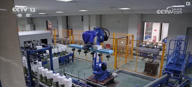研發(fā)快速、制造智能,在浙江的一個錦綸生產(chǎn)車間,從原料配送、落筒、絲餅傳輸檢測、包裝和倉儲都已實(shí)現(xiàn)全流程智能制造,24小時開工。