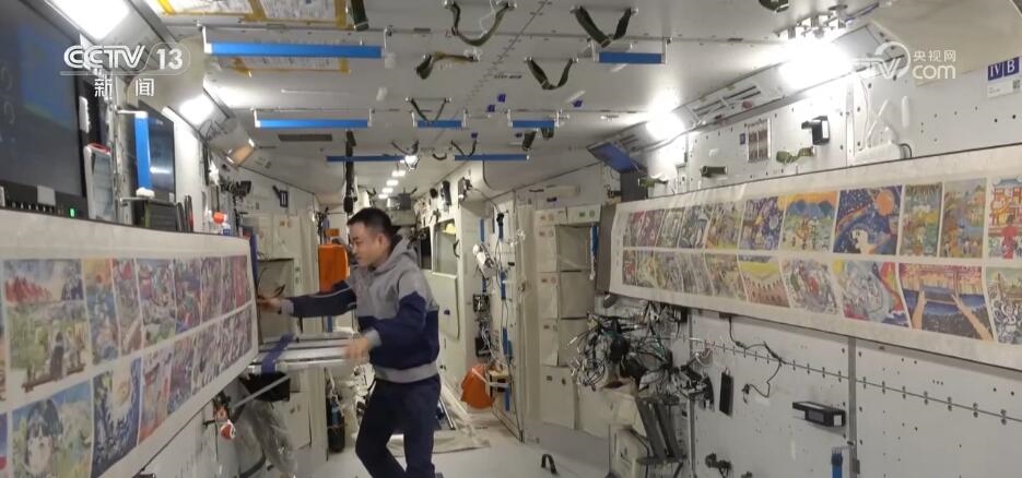 神舟十七號航天員乘組在鏡頭面前介紹“天宮畫展”時說:“全國各地的青少年朋友們,大家新年好!我們是神舟十七號航天員乘組,這里是咱們中國人自己的太空家園——中國空間站。分享一個好消息,大家期盼已久的天宮畫展又‘上新’了!”