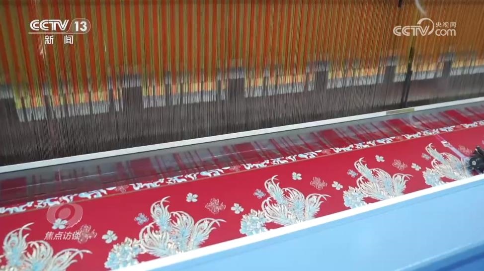 張明強:“大提花的機器原來可以做窗簾,但同時也可以做馬面裙面料,也可以做服裝面料,就是同一臺機器可以做,所以我們這次轉(zhuǎn)型是不需要買機器的,它的成本就會比較低了。”